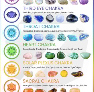 Chakra stones are crystals that correspond to the vibrations and colors of each chakra. By using these stones, we can help cleanse, activate, and balance our energy centers. Here's a quick guide to some popular chakra stones: